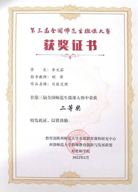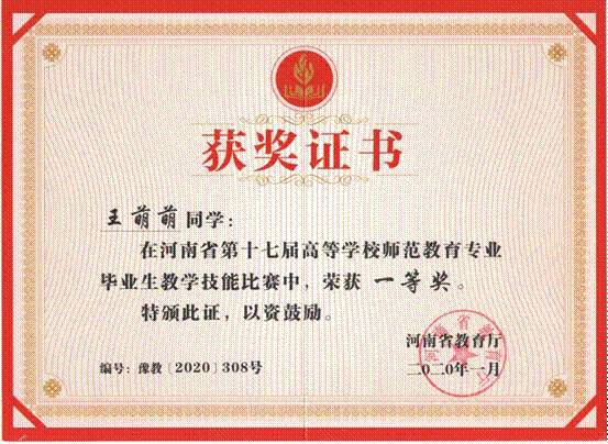 4 学生参加师范教育专业毕业生教学技能比赛获奖证书