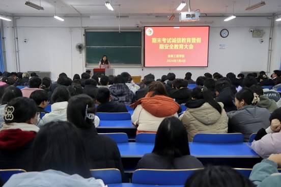 学生手册》关于学生考试违纪作弊处理办法,提醒同学们认真备考,自觉遵守考场纪律。随后,王明艳以实际案例为切入点,告诫学生严格要求自身做到诚信考试。同时提醒学生寒假期间,注意人身财产安全、交通安全、饮食安全、网络安全、防电信诈骗等,教育引导学生要不断增强安全意识和自我保护能力。