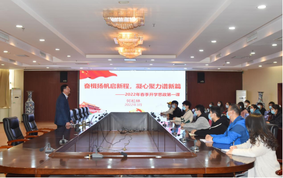 3月23日下午,副校长何松林在行政楼206会议室,以《奋楫扬帆启新程,凝心聚力谱新篇》为题,为信息工程师生讲授春季开学思政第一课,学院党政领导、教师和辅导员老师以及物联网201班同学参加听课。