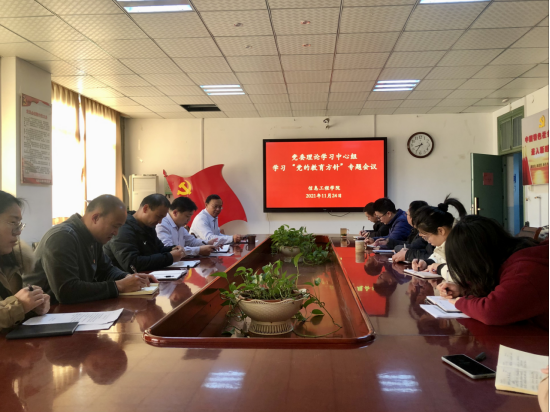 党委理论学习中心组召开专题会议,认真学习党的教育方针,学院党政领导、各支部书记参加学习会,学院党委书记郎瑞红主持会议。
