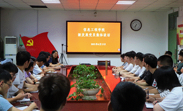6月15日晚,学院党委副书记张建设在0#502会议室对新发展党员进行了集体谈话,副处级党建组织员王明艳主持会议。
