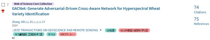 [8]     Zhang Weidong, Li Zexu, Li Guohou*, Zhou Ling, Zhao Wenyi, Pan Xipeng. AGANet: Attention-Guided Generative Adversarial Network for Corn Hyperspectral Images Augmentation. IEEE Transactions on Consumer Electronics, 2025. (中科院2区,IF:10.9)