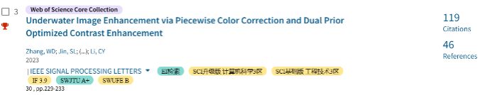[11]  Chen Xiaoguo, Sun Shilong, Gao Yaqi, Zhao Wenyi, Zhang Weidong*. Underwater Optical Image Contrast Enhancement via Color Channel Matching. IEEE Geoscience and Remote Sensing Letters, 2025. (中科院3区,IF:4.4)