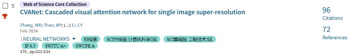 [7]     An Jinliang*, Dai Longlong, Zhang Weidong, Zhang Xiangrong. MIAF-Net: Multiscale interactive attention fusion network for hyperspectral image classification. Expert Systems with Applications, 2025. (中科院1区,IF:7.5)