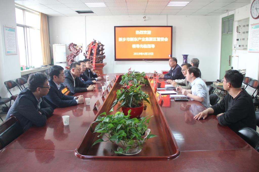4月18日,新乡市红旗区新东产业集聚区管委会常务副主任王根柱、副书记张利明、副主任司贵民、潘灿林等一行六人来91天堂