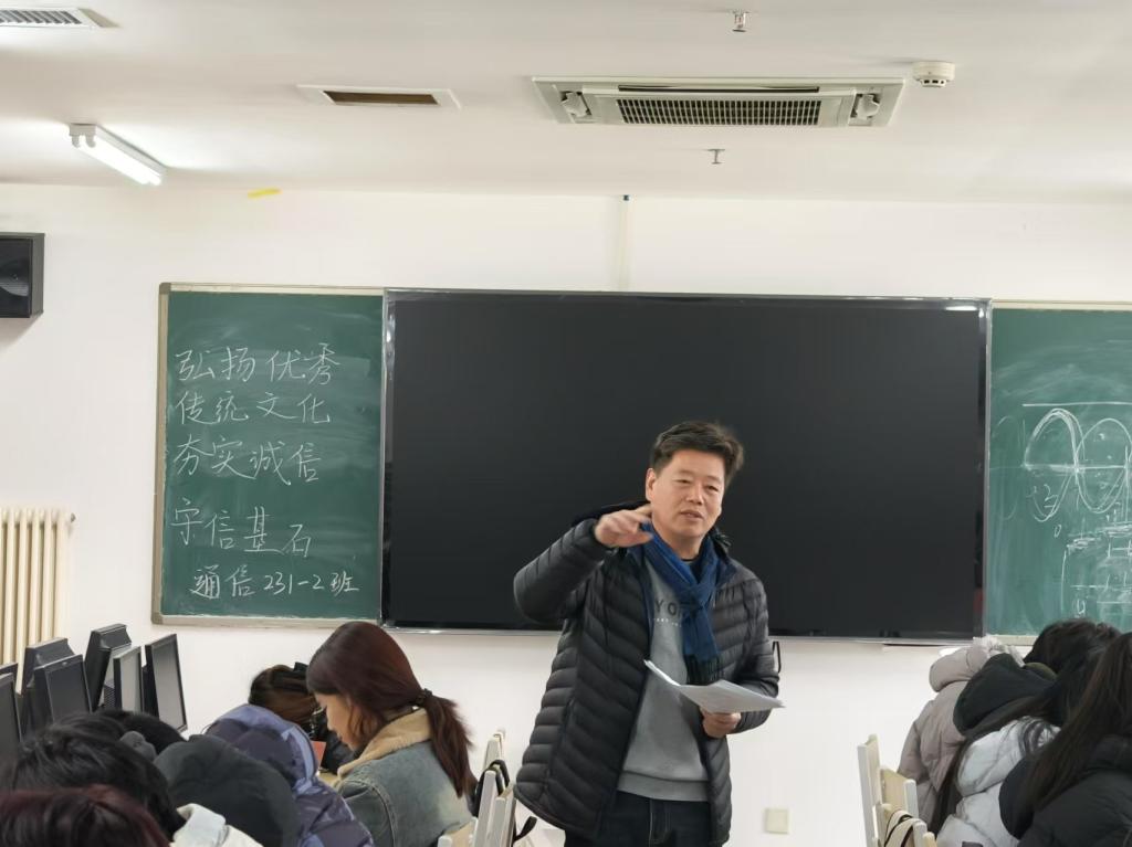 班会上,各班班主任分别从诚信考试教育、假期安全教育、传统文化教育三个方面开展,带领同学们认真学习《学生手册》考风考纪的内容和相关文件,倡导同学们以诚信为舵,扬帆“诚考”海洋。根据《学生宿舍管理办法》《校园安全提醒》等文件,提醒学生离校前要关好宿舍的水电门窗,提高安全防范意识。最后,各班班主任带领同学们学习中华民族优秀传统文化,倡导同学们要坚定文化自信,自觉传承和弘扬中华优秀传统文化。