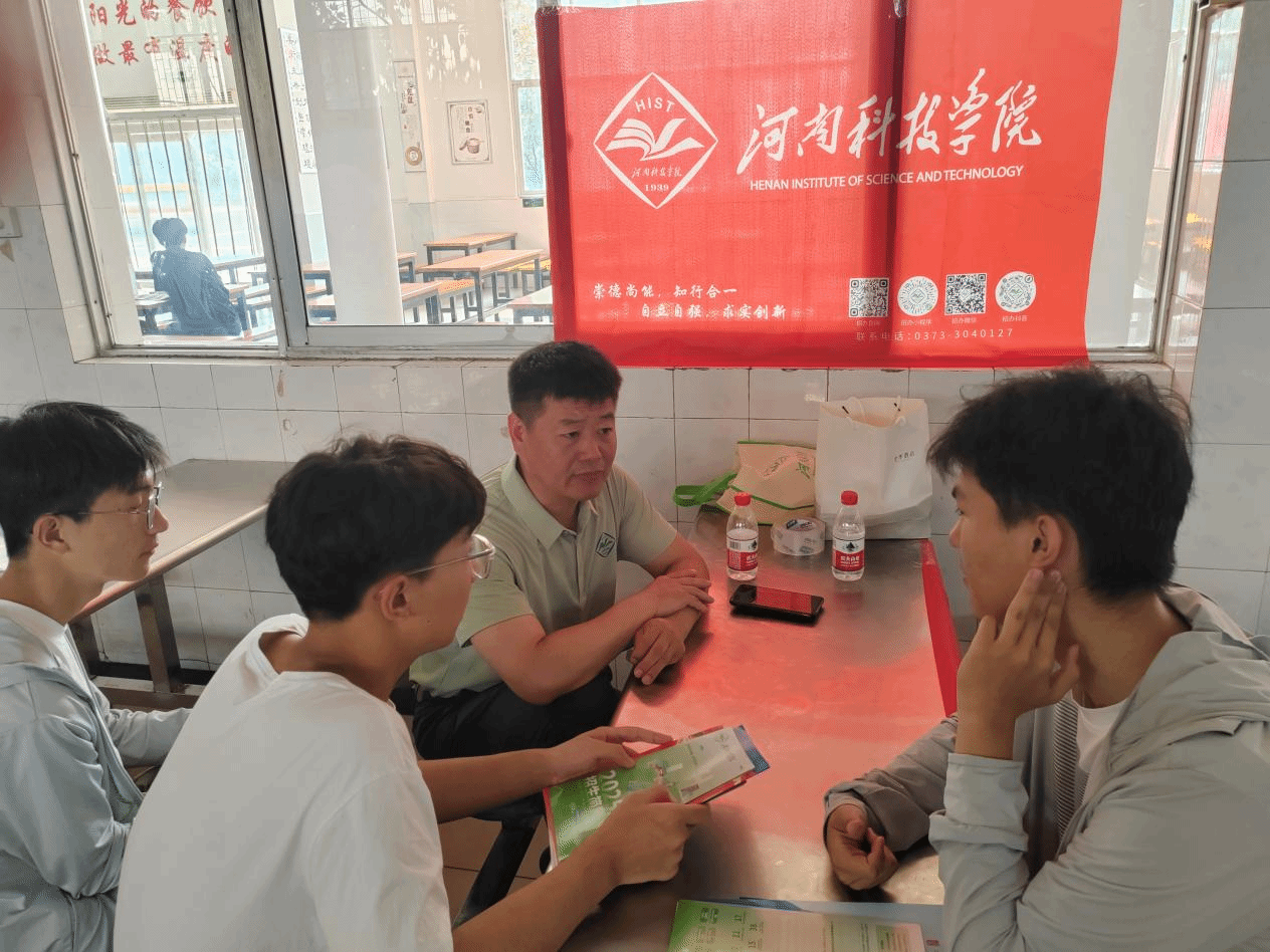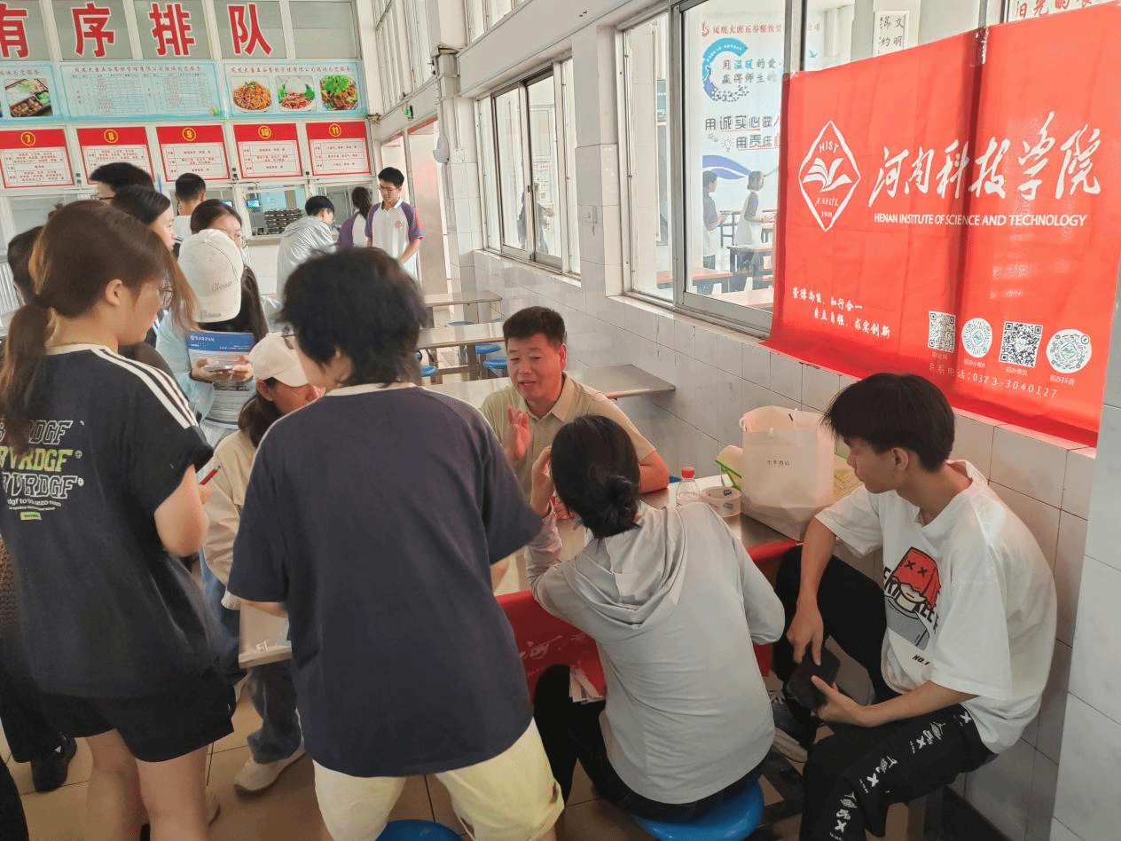 李印一行走进教室、走进食堂开展招生宣讲,他们围绕专业特色、就业前景、校园文化等内容展开解读,并针对考生关心的录取分数线、转专业政策、奖助学金等问题进行细致解答。现场发放了招生宣传手册,为考生提供“一对一”志愿填报指导,帮助其科学规划升学路径。