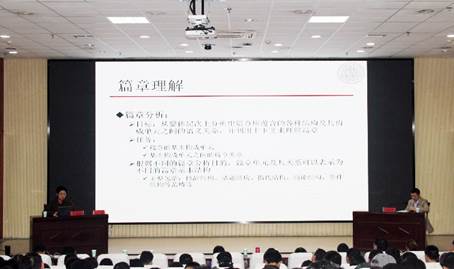 周国栋教授首先讲述了他的科研经历以及团队建设情况,然后从自然语言本质特点、语言理解核心任务、语言理解、篇章理解以及知识图谱等方面开展报告。随后,孔芳教授从理论体系、资源建设、计算模型等多个不同层次介绍了篇章结构分析和语义理解的相关研究。最后,两位教授与参会师生进行了深入交流,热情的回答了同学们的问题。