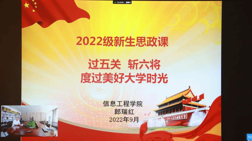 党委书记郎瑞红在0#502会议室为全体2022级新生讲授“开学第一课”。