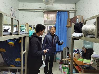 副处级党建组织员王明艳,团委书记张海民,正科级辅导员曲富柱,团委副书记袁家祺以及学生干部一行深入到学生宿舍,全面开展安全隐患大排查。