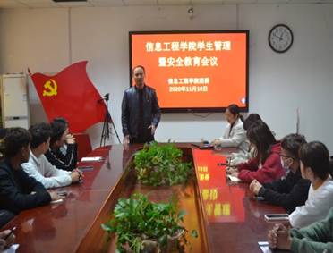 在0#502会议室召开学生管理暨安全教育会议。学院副处级党建组织员兼2018级辅导员王明艳,团委书记兼2020级辅导员张海民,团委学生会全体学生干部参加了会议。