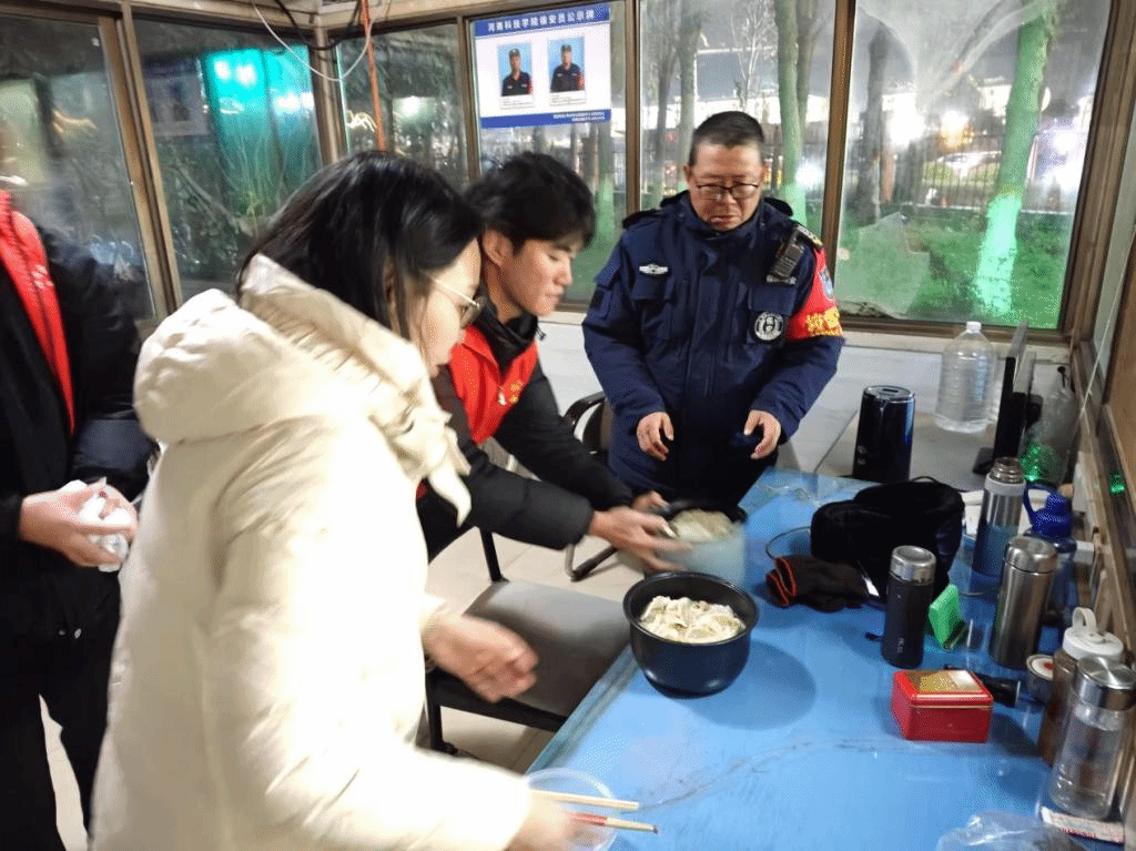 门岗保卫人员平时默默守护校园安宁,无论是烈日炎炎的夏日,还是寒风凛冽的冬日,他们都坚守在自己的岗位上,为全校师生的安全保驾护航。信工学生用实际行动诠释了“感恩”和“尊重”的真谛。在这个寒冷的冬日里,他们的爱心水饺如同一股暖流,温暖了保卫处老师的心。