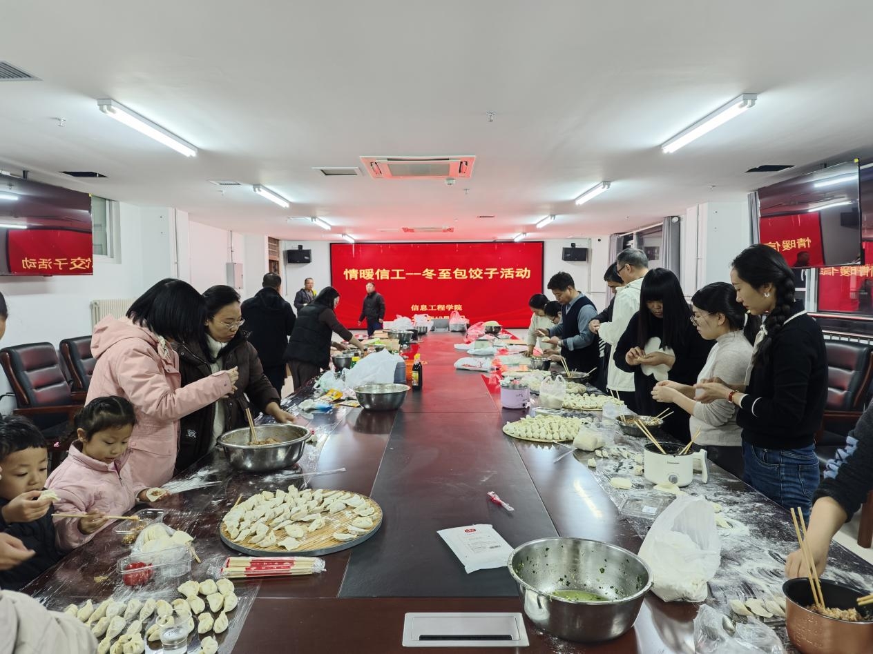 12月19,91天堂 工会在弘文楼413会议室开展“情暖信工”冬至包饺子主题活动。
