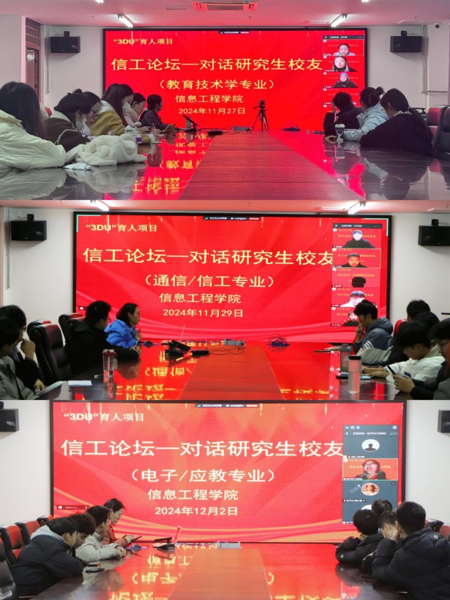11月28日至12月2日,分专业开展“3DU”育人项目——信工论坛之对话考研校友活动。学院党委副书记王明艳、团委书记袁家祺,14位研究生校友以及22级、23级学生参加活动。活动由袁家祺主持。